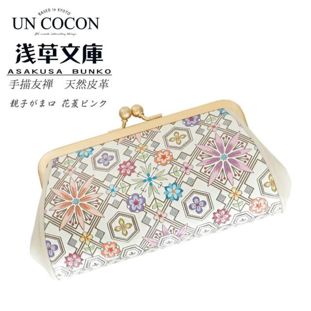 浅草文庫 親子がま口 財布 ミニ 花菱 ピンク 手書き友禅 天然皮革 おしゃれ 可愛い 大人 上品 送料無料