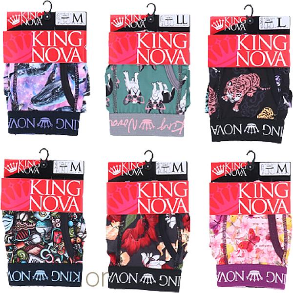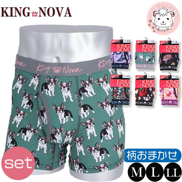 ボクサーパンツ 2枚セット メンズ KING NOVA キングノバ プリント柄 アウトゴム 前開き ボクサーブリーフ パンツ M/L/LL