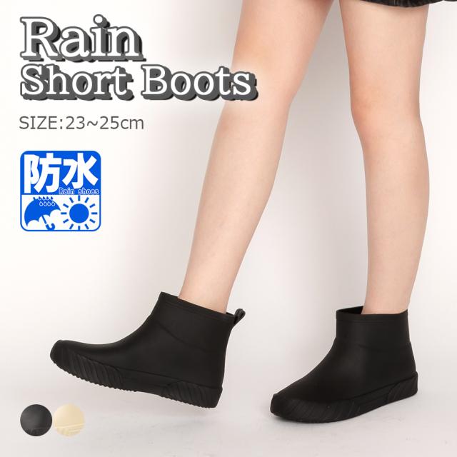 レインシューズ レディース レインブーツ ショートブーツ 晴雨兼用 雨 雨具 雨靴 梅雨 台風 対策 防水 防滑 PVC ストリート カジュアルシューズ ブラック 黒 オフホワイト 白 軽量 シンプル 韓国 靴 シューズ クツ 長靴