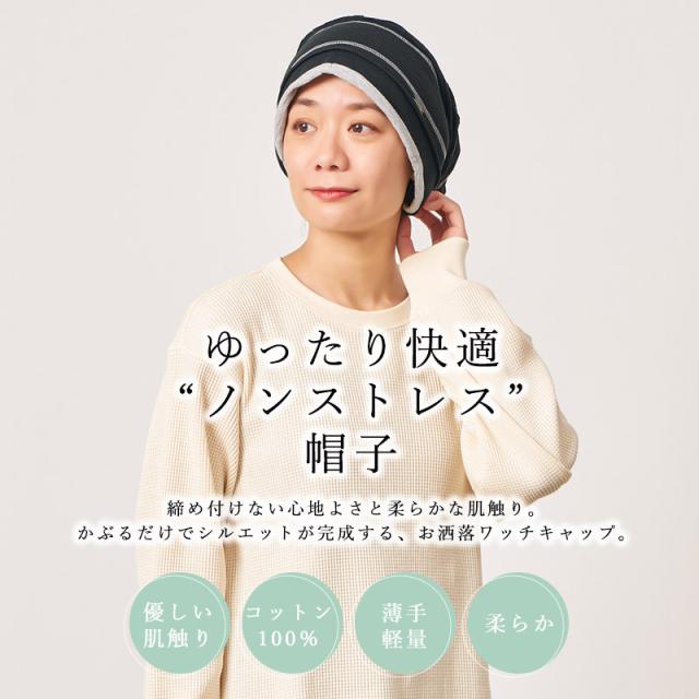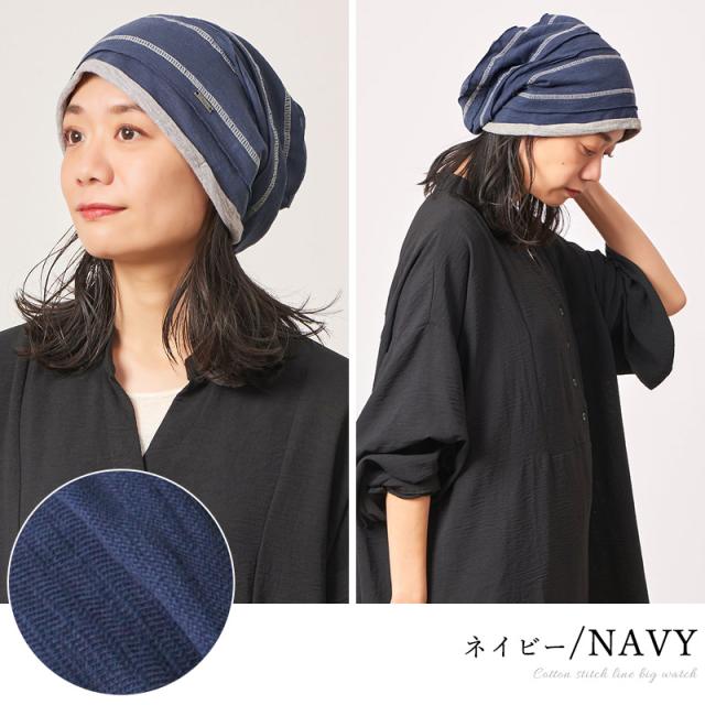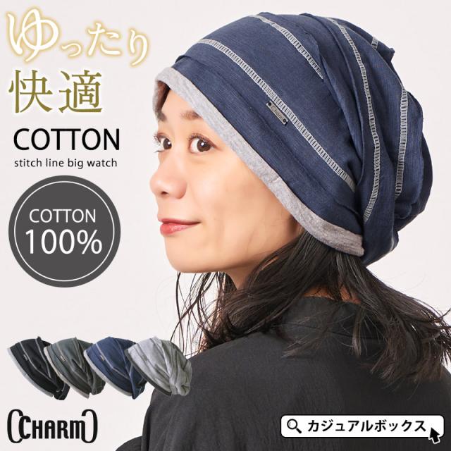 メンズ レディース オールシーズン 秋冬 春夏 綿100% 帽子 ニット帽 ニットキャップ ビーニー ワッチキャップ サマーニット帽 医療用帽子 おしゃれ 抗がん剤 外出 ケア帽子 かわいい 薄手 | CHARM コットン ステッチライン ビックワッチ bw-csb