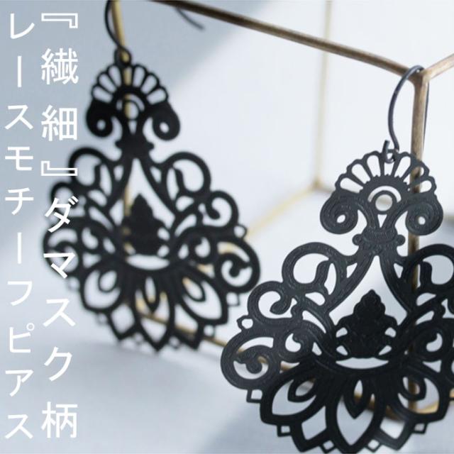 「繊細ダマスク柄」レースモチーフピアス。