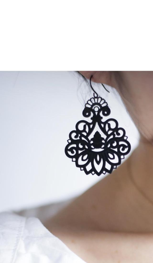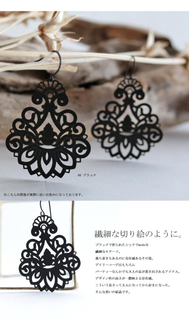 aj-00464 モダン ダマスク柄 レース シック アンティーク ブラック マット 揺れる 上品 アクセサリー アクセ 普段使い フォーマル 結婚式 二次会 パーティー