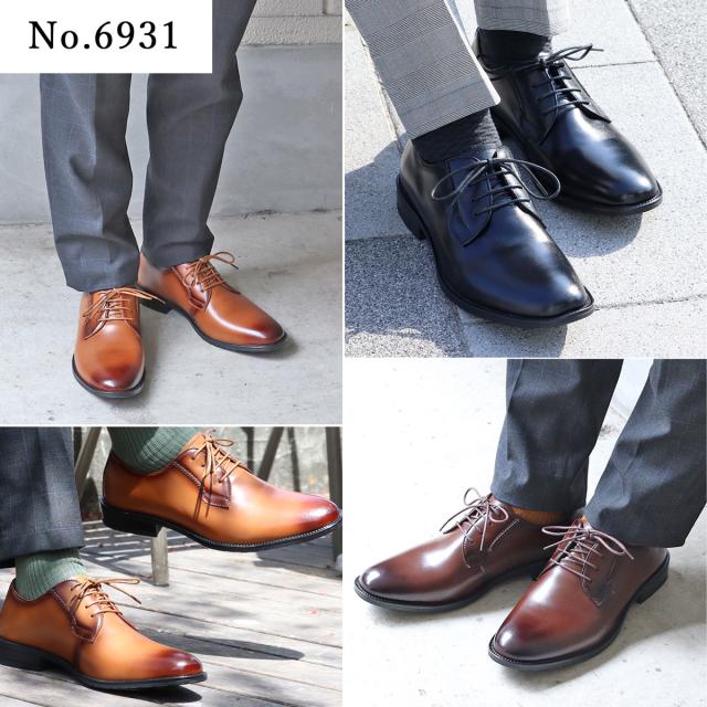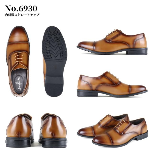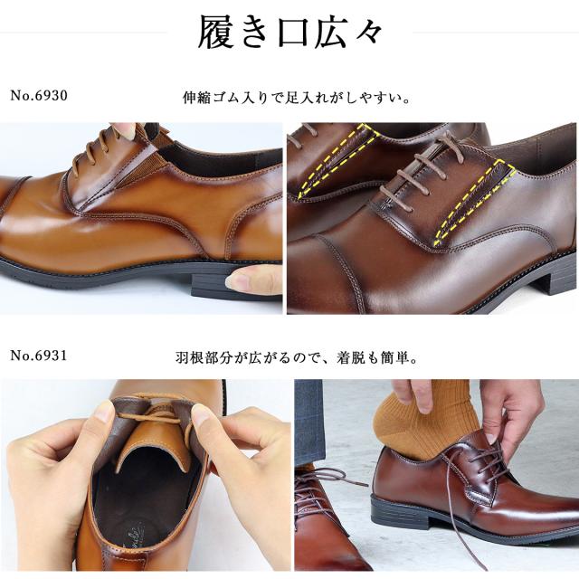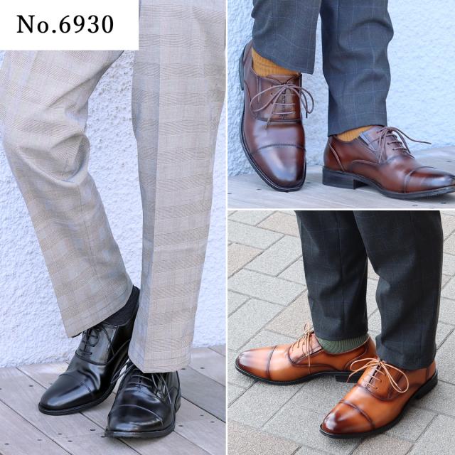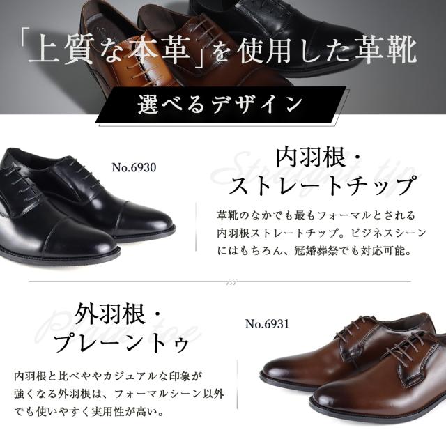 ビジネスシューズ 本革 内羽根 外羽根 ストレートチップ プレーントゥ レースアップ 24.5cm-30cm幅広 黒 茶 紐靴 柔らかい 6930-6931