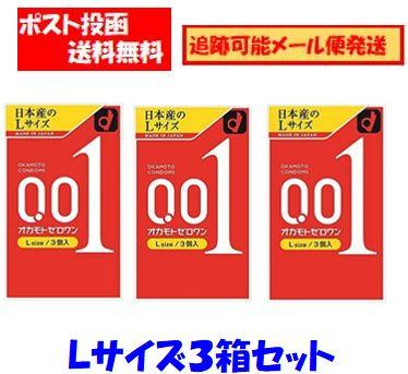「送料無料追跡可能メール便」コンドーム オカモト ゼロワンLサイズ 0.01ミリ 3個入 3箱セット