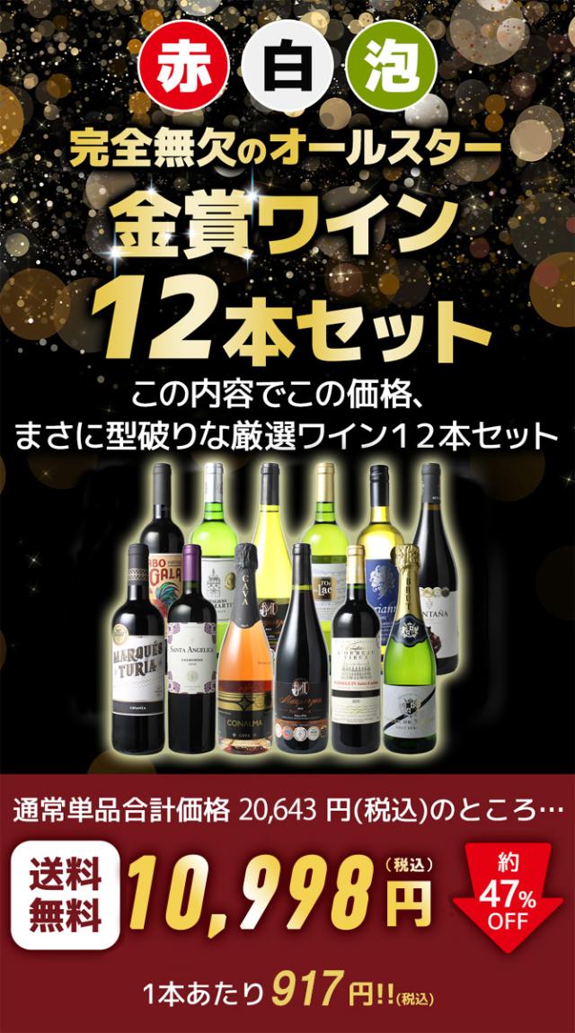 【送料無料】ワインセット 第40弾 金賞 ワイン 12本 セット 1本あたり税込917円 赤ワイン スパークリング 白ワイン ボルドー フランス イタリア スペイン 家飲み