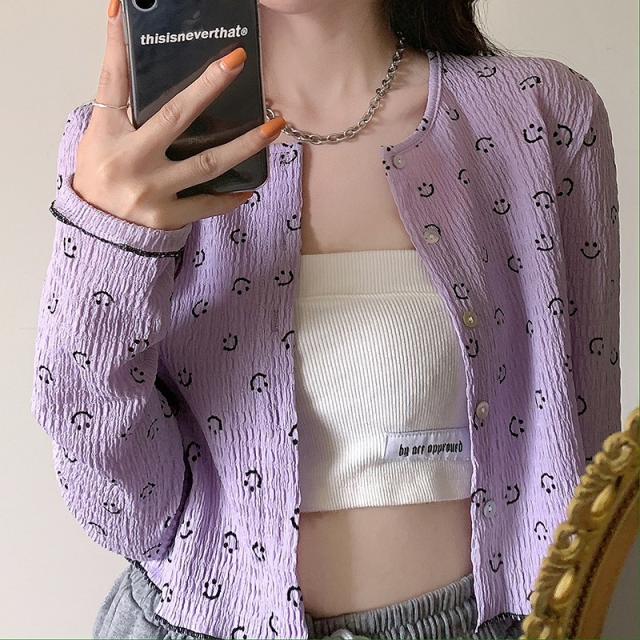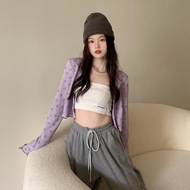 全3色カーディガンプリント日焼け止め冷房対策スリム着痩せカジュアルボレロカットソートップス紫外線防止2021春服夏服初春初夏早春早夏春夏新作婦人ギャルレディースINS超人気FACEBOOK