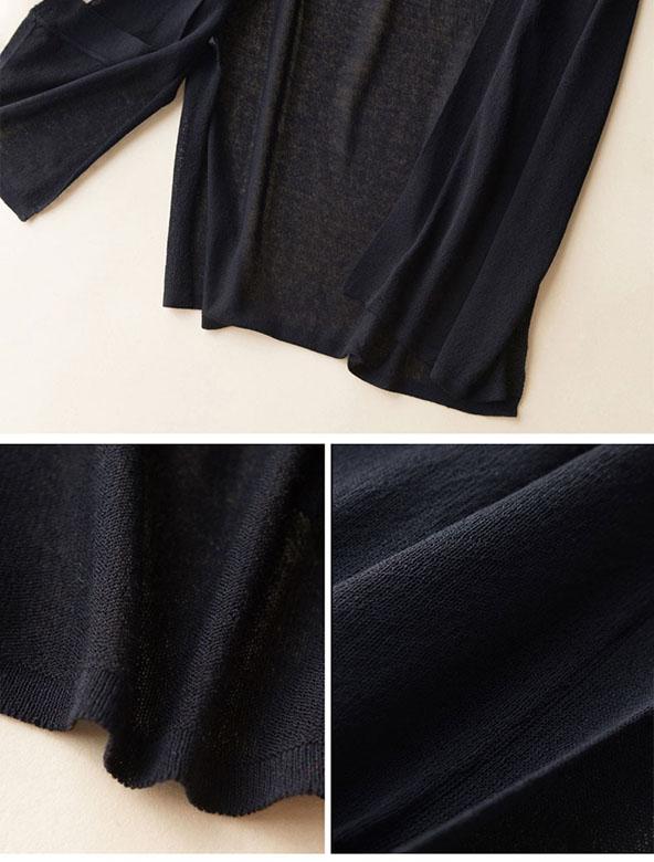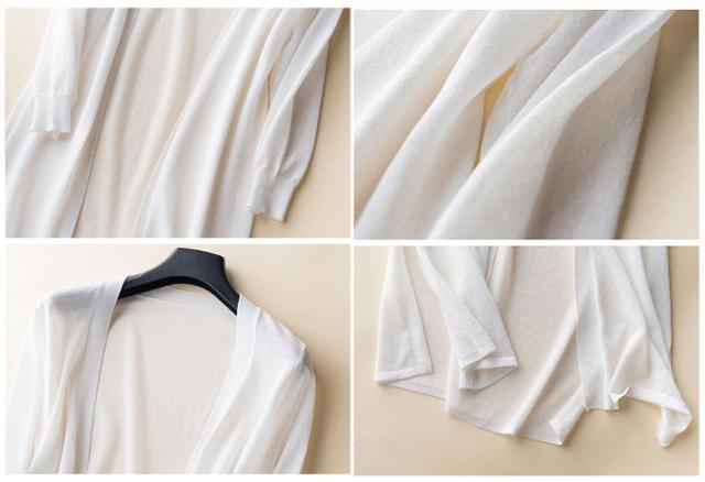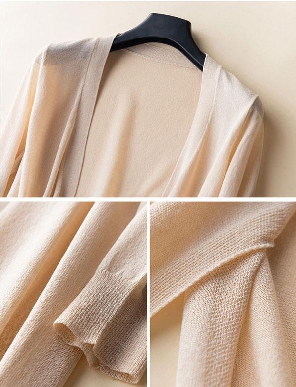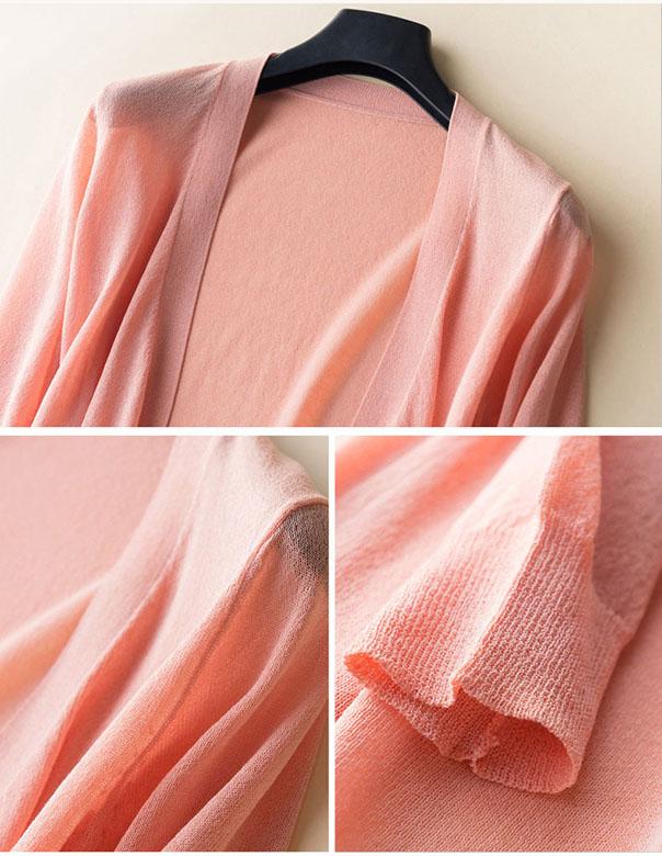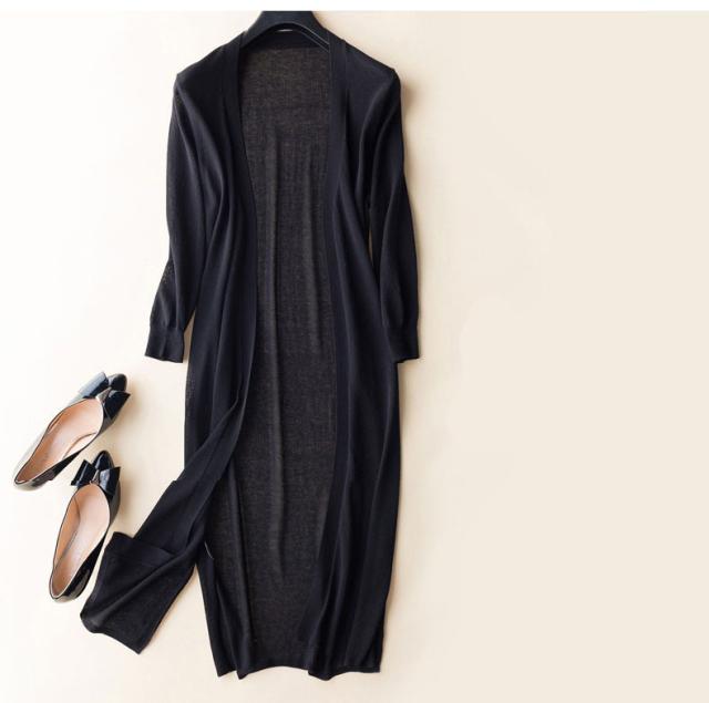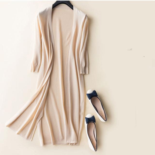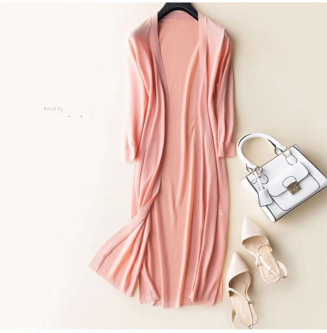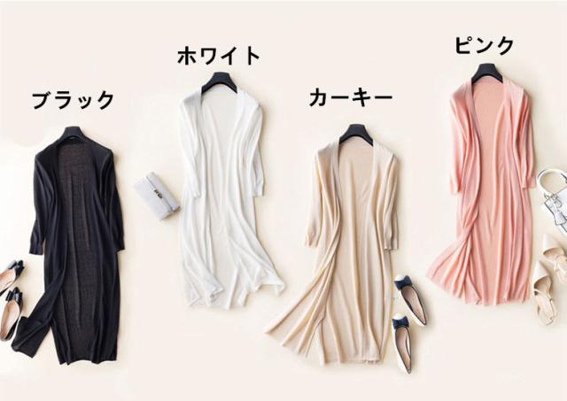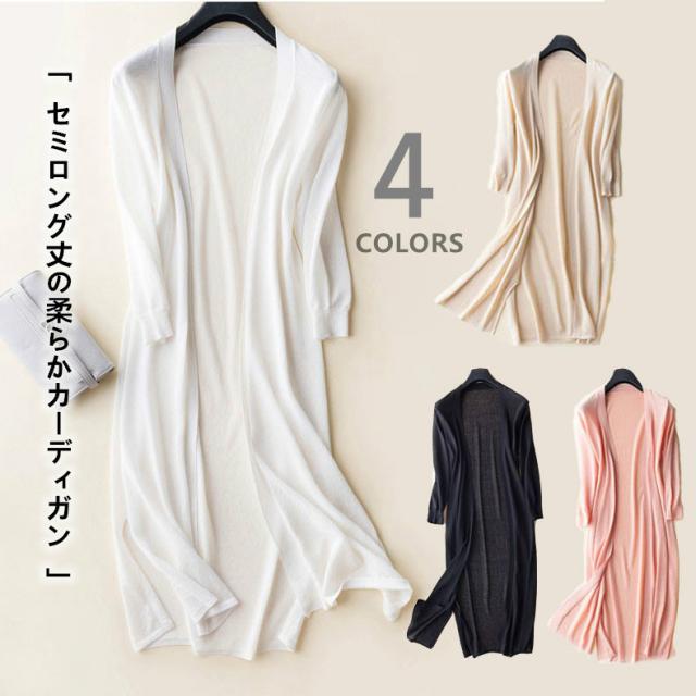 超人気一部●上品ロングカーディガン薄手無地シンプル七分袖ニットカット冷房対策
