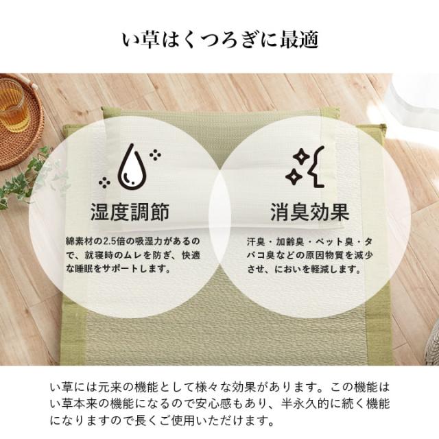 | 側地=国産い草 ※無地メセキ織 中材=低反発チップウレタン ヘリ=綿100% |