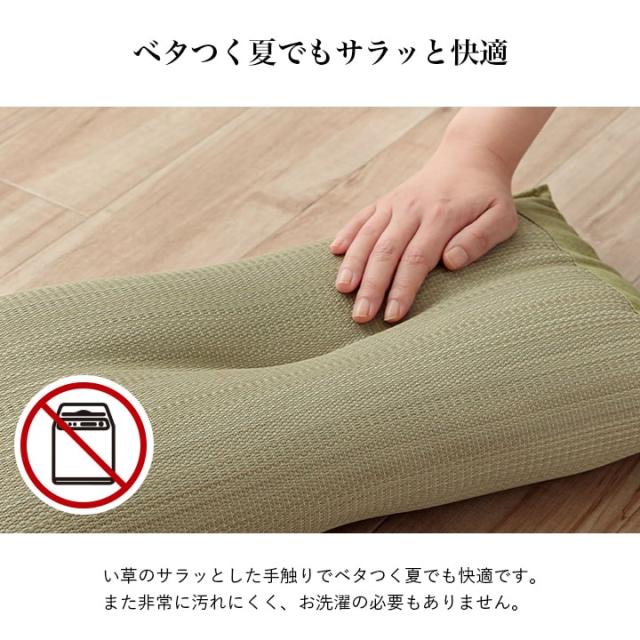 | ■ 国産(九州産)のしなやかなイ草を使用した、い草のくぼみ平枕です。より頭にフィットするよう、枕の中心部分に「くぼみ」をつくりました。 ■ 中材には低反発ウレタンを使用しています。柔らかすぎずヘタリにくく、型崩れしにくいのが特長です。心地良い眠りをサポートします。 ■ 快眠い草の効能として 1.綿の約2.5倍の吸湿力 2.蒸れにくい。汗による湿気を吸うことにより温度を下げ快適な就寝を促します。 3.汗のにおいを軽減。汗のにおいの元となる化学物質を90%以上抑えます。などがあります。 暑苦しい日本の夏でも汗のジメジメを軽減してくれます。 ■ 青森県のヒバの木から抽出した「ヒバエッセンス」をメーカー独自の技術で生地表面に加工しました。ヒバエッセンスにはヒノキチオールという天然物質が含まれており、抗菌防臭効果があります。 |