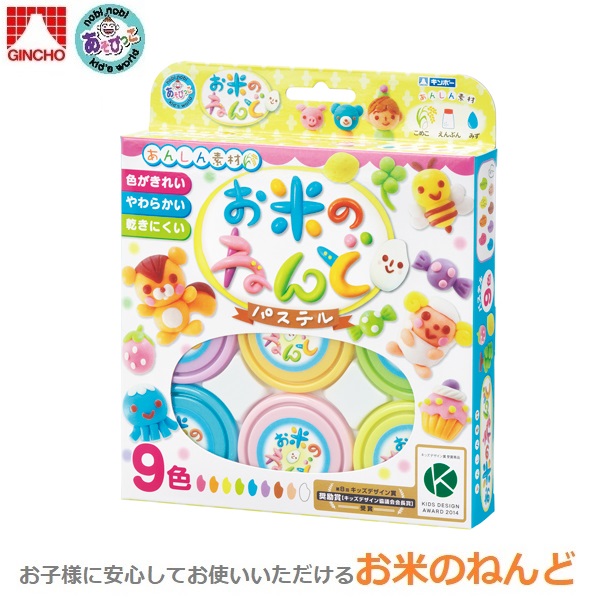 ギンポー お米のねんど パステル 9色セット 粘土 米粉 知育 安全 幼児 あそびっこ キッズデザイン賞