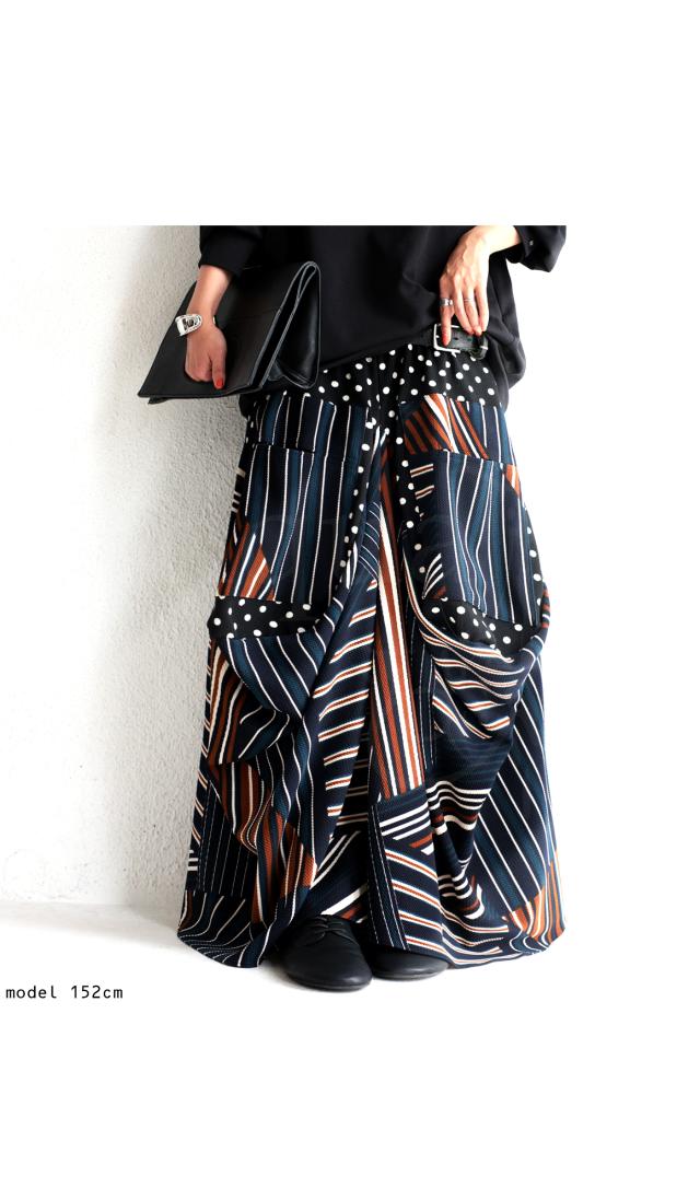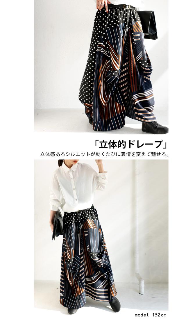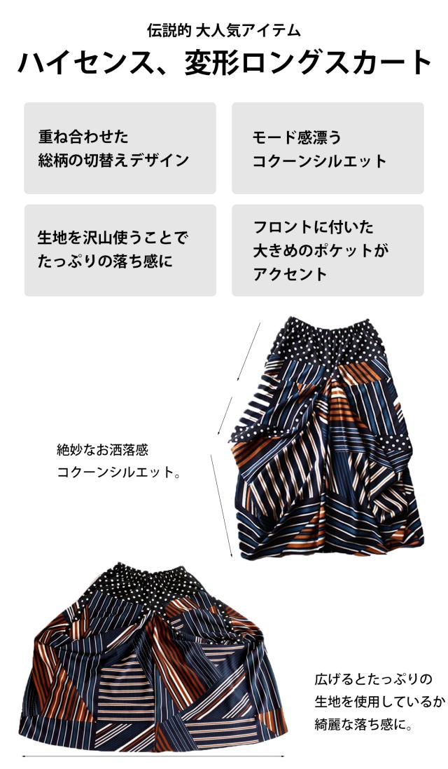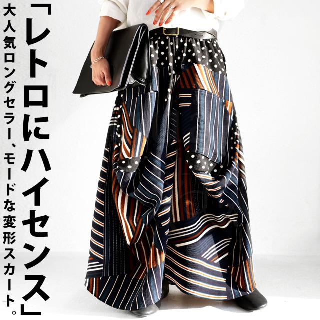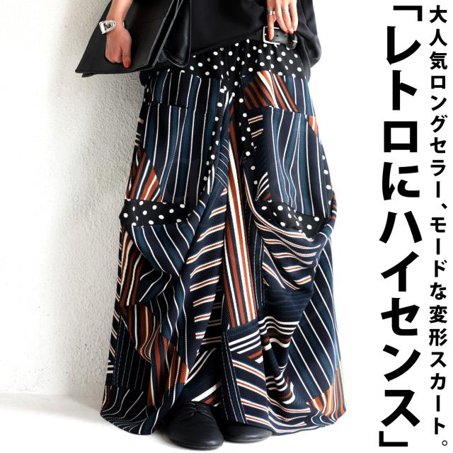 【検索ワード】変形ロングスカート スカート レディース ボトムス ロング マキシ丈 柄 水玉 ドット ストライプ ライン 総柄 変形 切替 配色 コクーン ボリューム ハイセンス モード 伸縮性 ゆったり 大きいサイズ antiqua アンティカ 大人 おしゃれ 10代 20代 30代 40代 50代 60代 春 夏 秋 冬 オールシーズン お洒落 カジュアル かわいい かっこいい あんてぃか