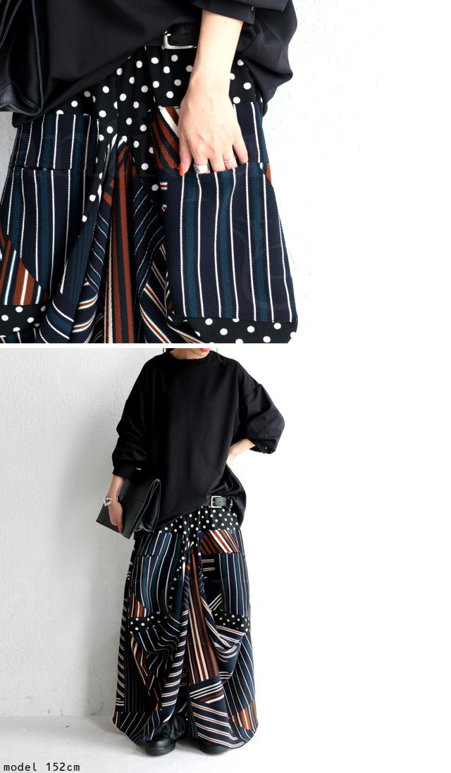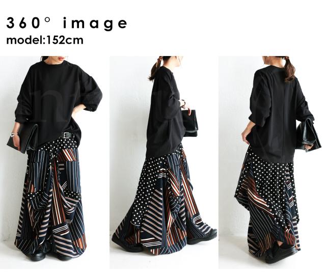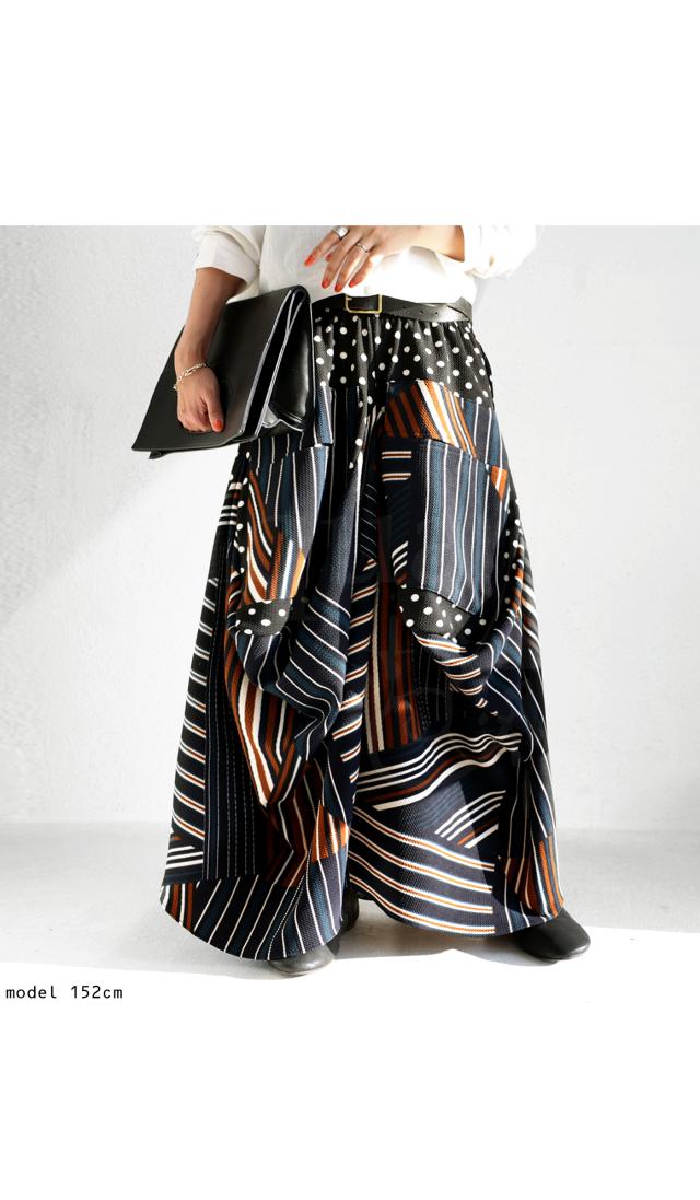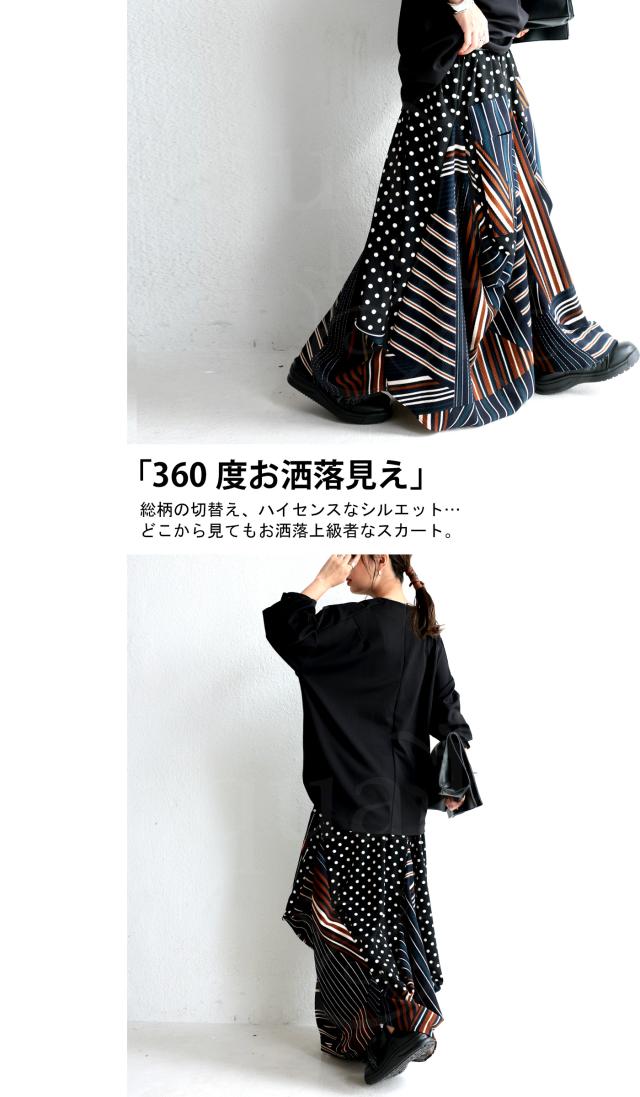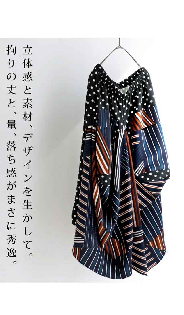 pa-00454 ロング マキシ丈 柄 水玉 ドット ストライプ ライン 総柄 変形 切替 配色 コクーン ボリューム ハイセンス モード 伸縮性 ゆったり 大きいサイズ