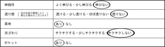 | 素材 | ポリエステル100% 裏地:ポリエステル100% |