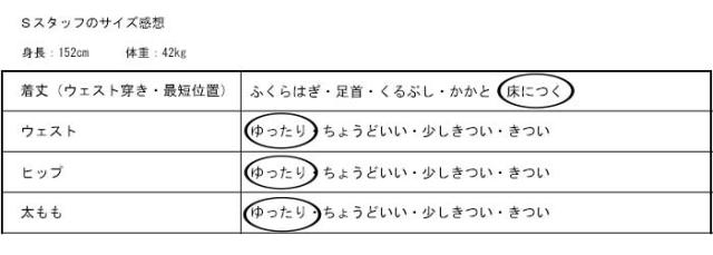 | ウエスト(前後ゴム伸縮あり) | 68〜100 |