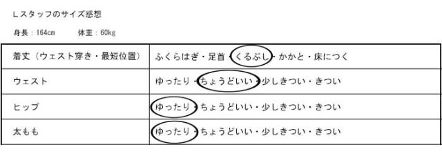 | 裏地の裾周り(スリット有) | 148 |