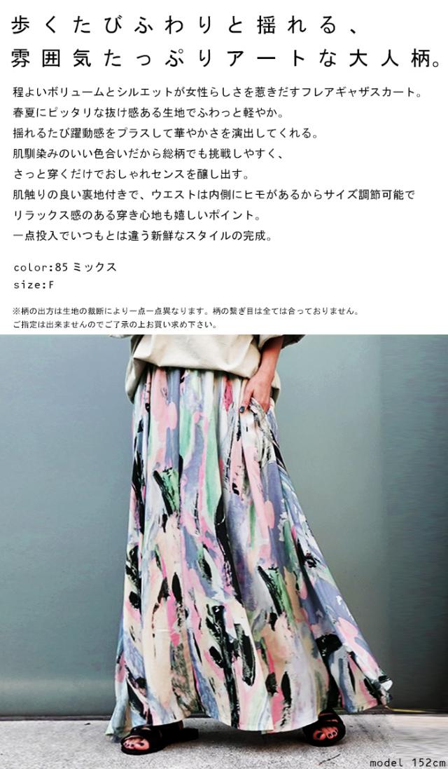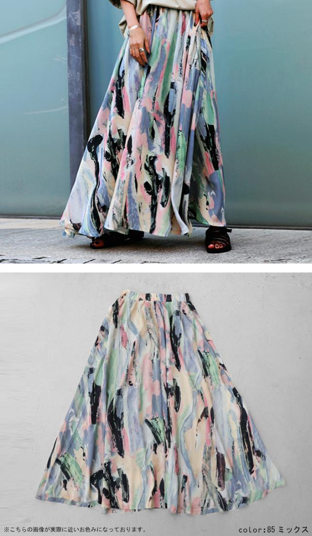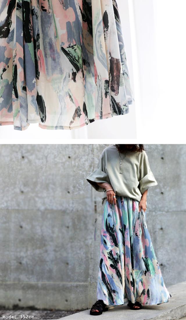py-00534 アート柄ギャザースカート スカート レディース ボトムス ロング マキシ丈 ゆったり ボリューム 柄 アート柄 水彩 ニュアンス ロングスカート 裏地付き ウエストゴム フレア ギャザー ドレープ antiqua アンティカ 大人 おしゃれ 10代 20代 30代 40代 50代 60代 春 夏 秋 冬 お洒落 かっこいい あんてぃか