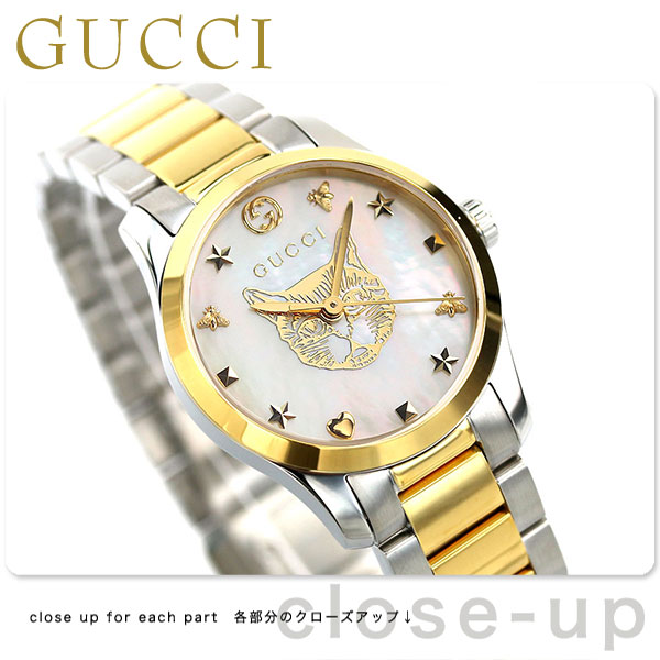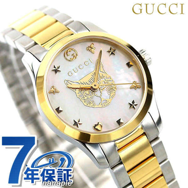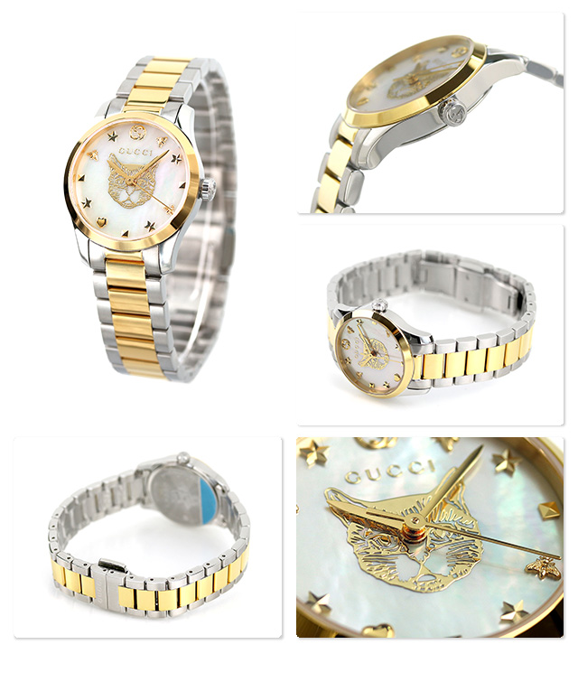 グッチ Gタイムレス 猫 スイス製 クオーツ 腕時計 YA1265012 GUCCI ホワイトシェル×ゴールド