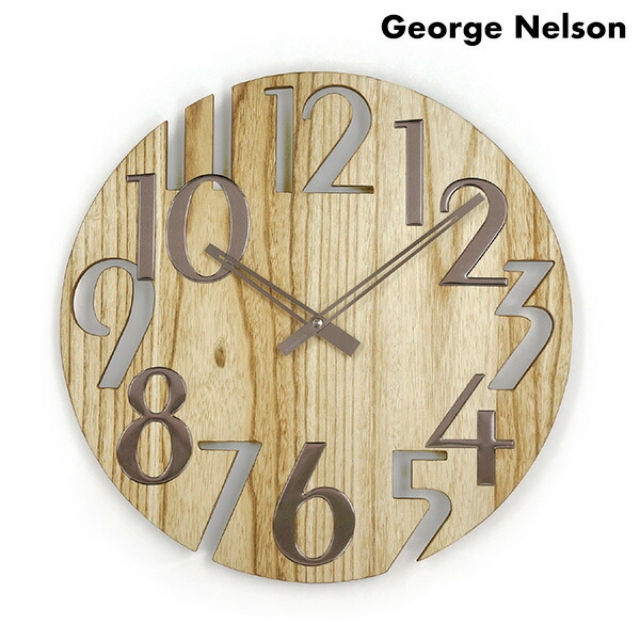 正規品 ジョージ ネルソン ウォール・クロック プラタナス クオーツ 掛時計 クロック GN215NT George Nelson アナログ ライトブラウン ◆George Nelson(ジョージネルソン)は、アメリカ人のデザイナージョージ・ネルソンが手掛けた「ウォール クロック」ブランドです。家具メーカーであるハーマンミラー社のデザインディレクターを長年務め、イームズ夫妻やイサム・ノグチ、アレキサンダー・ジラードらの才能を見出したことでも知られます。 クールな質感の数字と天然木とのコンビネーションを採用した、おしゃれなデザイン。ヴィンテージ調の天然木を貼り合わせた文字盤は、1点1点違った表情で世界に一つだけの特別感があります。