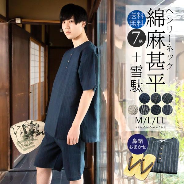 甚平 メンズ おしゃれ ヘンリーネック「ヘンリーネック甚平と雪駄のセット 全7柄 3サイズ M L LL」父の日 敬老の日 男性 プレゼント 綿麻甚平 【送料無料】【メール便不可】 f_fashion