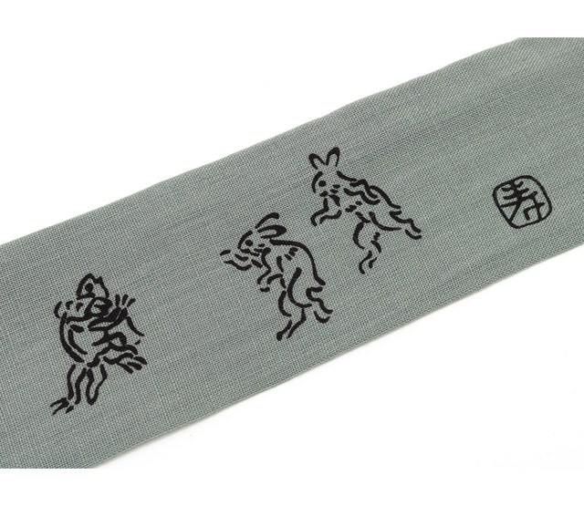 京都の高山寺に伝わる絵巻物の、兎や蛙、猿などを擬人化した鳥獣人物戯画がデザインされています。