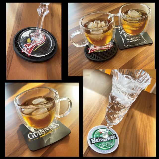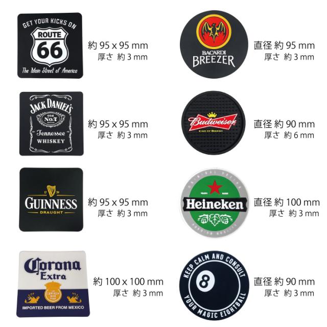 【メール便対応】コースター グラスマット アメリカン雑貨 10種類 男前 バー カフェ ビンテージ ラバー素材【ROUTE66 JACKDANIELS GUINNESS CoronaExtra BACARDIBREEZER Budweiser Heineken 8-Ball NOS】┃