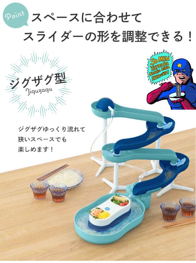 食卓のスペースに合わせてスライダーの形を調整できるスライダーそうめん流し器です。