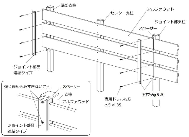 横幅4000mm×高さ1500mmのベータウッド・フェンスセットです。 板材・支柱のほか、設置・組み立てに必要なジョイント部品・ネジ一式が揃っています。