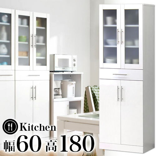 食器棚 幅60cm高さ180cm キッチン 台所 収納 白 ホワイト 整理棚 キッチンラック キャビネット 食器収納 カトレア ガラス扉付き 家具 インテリア 引き出し引出し おしゃれ 省スペース 北欧 モダン 木製/通販/送料無料 【送料込み】 新生活
