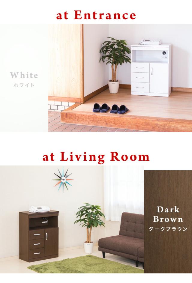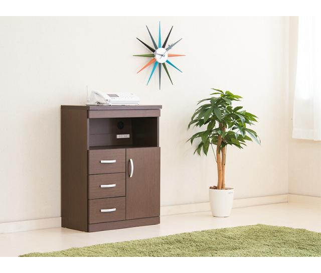 | シンプルな家具の電話台、FAX台、ファックス台として優秀です。 ごちゃごちゃ絡むルーターやモデムなどコードもスッキリ! きちんと配線収納できます。 新生活にお引越しなどのお祝いギフトとしてもお薦めの機能性抜群の電話台。 玄関やリビングに配置しやすい60cm幅で高さは80cmなので圧迫感がありません。 窓下やカウンター下にも設置できるコンパクトサイズ。 あなたのお部屋に必ず似合う定番3色をご用意。 清楚感のあるホワイト。 北欧スタイルに合う木目ナチュラル。 大人っぽいシックな木目ブラウン。加湿器の置き場所におすすめ |