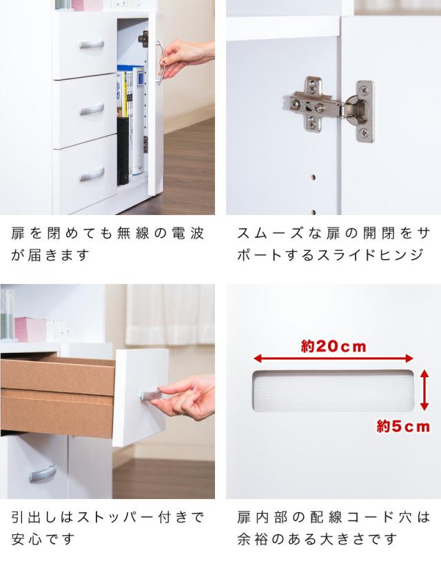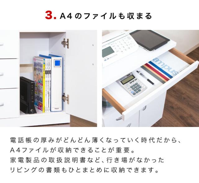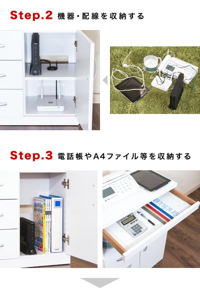 FAX台 電話台 プリンター台 リビング収納 木製 完成品 回線収納 ルーター収納 ネットの機械 玄関収納 幅60 隙間収納 便利収納 インターネット機器 ネット機器 配線 鍵置き NTTフレッツ OCN収納 隠す 扉付き 引き出し コンパクト スリム おしゃれ A4 電話帳 コード穴 4杯 キングファイル 木製 プリンタースタンド 組み立て不要 印鑑 判子