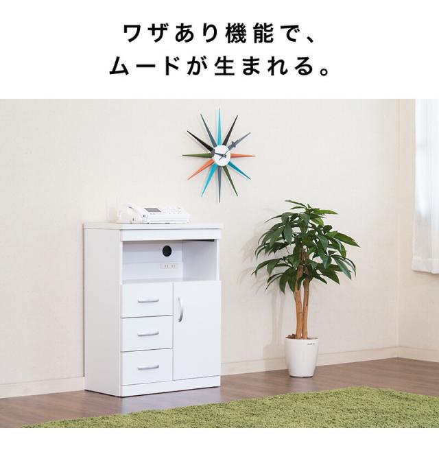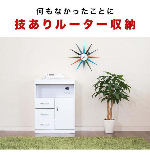電話台 FAX台 完成品 幅60 モデム収納 配線収納 タップ収納 コンセント付き リビング収納 完成品 プリンター台 光終端装置 収納 隠す 多機能 WIFI ラック 木製 おしゃれ 加湿器の台 便利 木製 引出し ホワイト ダークブラウン ナチュラル 送料無料 ルーター収納 ファックス台