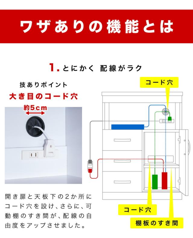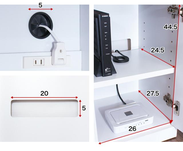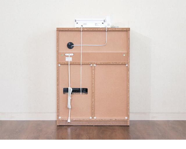 扉部分の背面にあるコード穴が大きめなので、放熱効果があるようです。