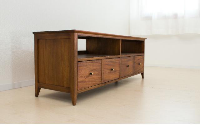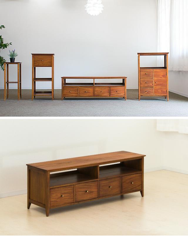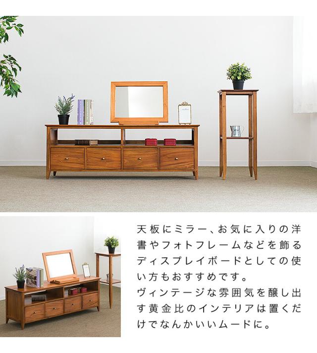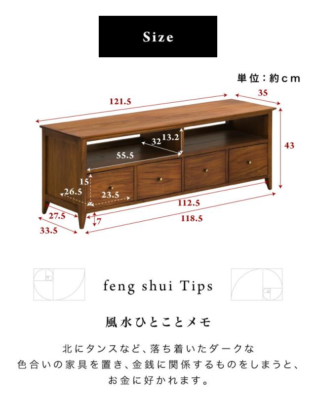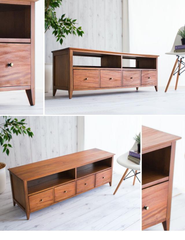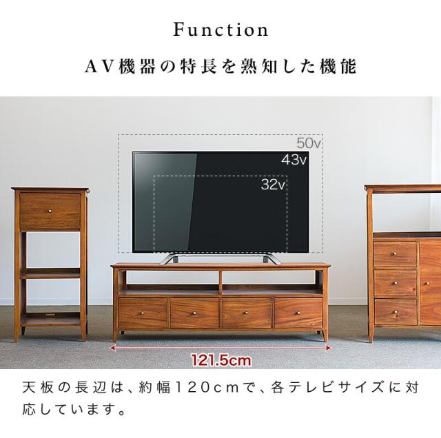 テレビ台 幅121.5 奥行35 高さ43 天然木 マホガニー 無垢材 ローボード 完成品 黄金比 ワイド 24インチ 32インチ 40インチ 50インチ 薄型 木製 北欧 アンティーク ヴィンテージ オシャレ 引出付き オープンラック 背面オープン 脚付き 組立不要
