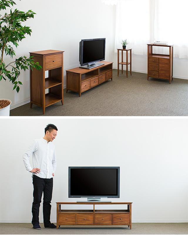 もちろん24インチ、32インチの小型、40インチ、43インチの中型のテレビにも最適なリビング収納で、小さな花瓶や鉢植えの置き台や、飾り棚としても、色々なシーンで使えるコンパクトサイズです。