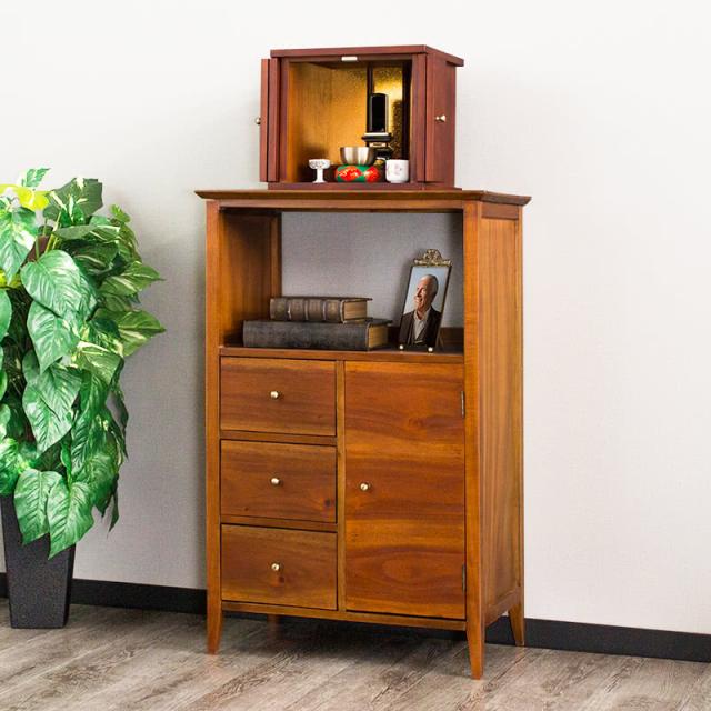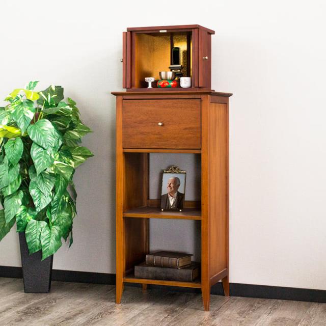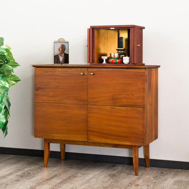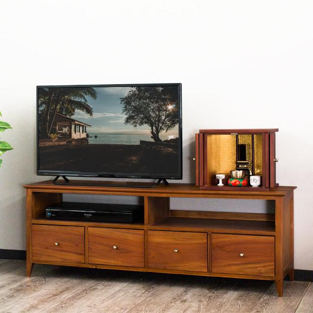 仏壇台 幅121.5 天然木 完成品 インテリア仏壇 ミニ仏壇 台 テレビ台 奥行35 高さ43 無垢材 ローボード 黄金比 ワイド 24インチ 32インチ 40インチ 50インチ 薄型 木製 北欧 アンティーク ヴィンテージ オシャレ 引出付き オープンラック 背面オープン 脚付き 組立不要