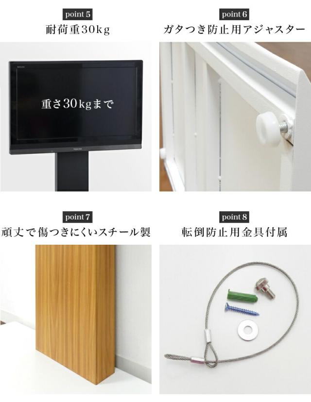 対応サイズ 32v 40v 50v 32v 42v 55v 60v対応 32インチ 42インチ 50インチ 55インチ対応 49インチ 40型 50型 背面に配線を収納できるので見た目もスッキリとした印象の壁掛け風テレビ台スタンド 5段階の高さ調節が可能 頑丈な作り スチール製 ガタつきを防止するアジャスター付 左右30度の角度調節可能 転倒防止用金具も付属液晶テレビ用 配線 隠し 賃貸 壁掛け テレビ 壁掛け風テレビ台スタンド 壁寄せ テレビ台 テレビボード テレビスタンド 背面収納 コード収納 ホワイト 白 ブラック 黒 ナチュラル テレビ台 スチール おしゃれ コーナー 賃貸にオススメの壁掛け風 テレビボード テレビ 高さ調節 テレビ壁寄せ スタイリッシュな壁掛け風テレビスタンド 壁寄せスタンド テレビスタンド 壁面 テレビ台 賃貸 壁掛け テレビスタンド 対応 テレビ台 賃貸 壁掛け テレビ 壁寄せテレビスタンド ロータイプ 高さ調節 テレビ壁寄せ 壁掛け風 壁よせ テレビスタンド 壁面 壁寄せ 壁よせ 壁寄せ 壁よせ 壁に寄せるだけ お部屋スタイリッシュに壁掛けスタイル シンプル 配線隠し 背面収納 薄型テレビ用 壁掛け風 テレビスタンド 壁寄せテレビスタンド スチール製で丈夫なテレビ台 おしゃれ 配線収納 壁掛け 壁寄せ 壁よせ テレビ台 テレビ台