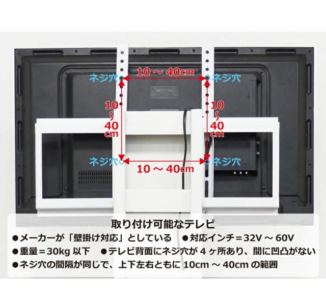 対応サイズ 32v 40v 42v 50v 49v 55v 60v対応(機種によっては壁掛けに対応していない場合がございますのでご注意下さい)