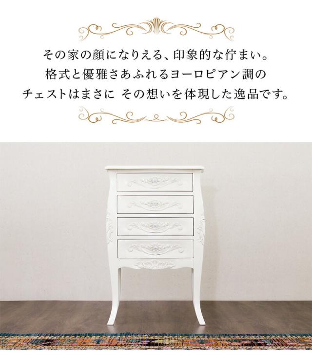チェスト ヨーロピアン アンティーク風 4D 幅55cm ホワイト 木製 猫脚 ネコ脚 姫家具 プリンセス家具 ラグジュアリー 白家具 ファックス台 電話台 インテリア収納 FAX台 /通販/送料無料 チェスト 新生活 組立不要