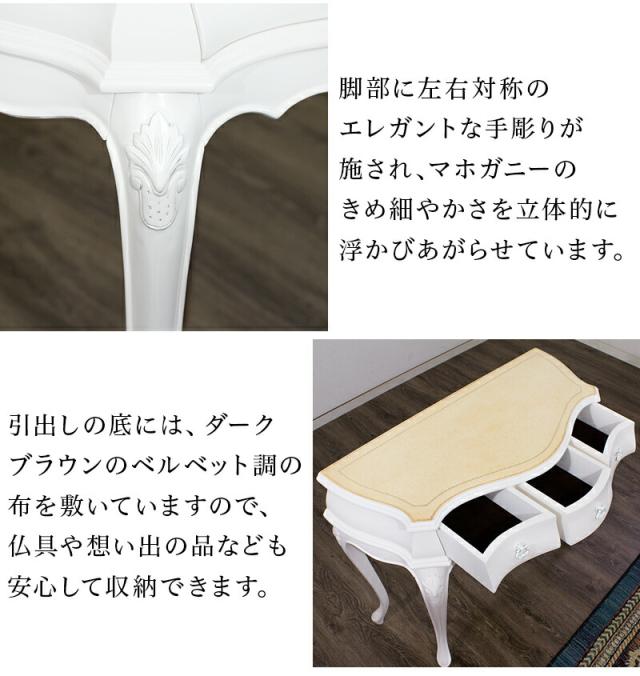 コンソールテーブル コンソールテーブル 玄関 コンソールテーブル 白 コンソール 玄関 スリム コンソールデスク マホガニー 天然木 ホワイト ロココ調 アンティーク 猫脚 猫脚家具 ホワイト ヨーロピアン アンティーク 花台 仏壇台、仏壇の台、おしゃれ仏壇下台、小型仏壇を乗せるのに最適なおしゃれな仏壇台、仏具、小さい仏壇の台、現代仏壇に、和室洋室どちらにも置いて頂けます、マンションやアパートでも場所を取らないのでオススメ、ペット仏壇の台、愛犬、愛猫の供養、家具調仏壇台、ペットメモリアルグッズ、ペット位牌、葬儀用品、手元供養 鍵置き 高級 ミニ 完成品 引き出し ライティングビューロー ドレッサー エレベーターホール ジュエリー 貴金属 アクセサリー シャビーシック 電話台 FAX台 パソコンデスク在宅勤務 テレワーク 在宅ワーク 自宅勤務 自宅ワーク 自宅 仕事 ミシン台