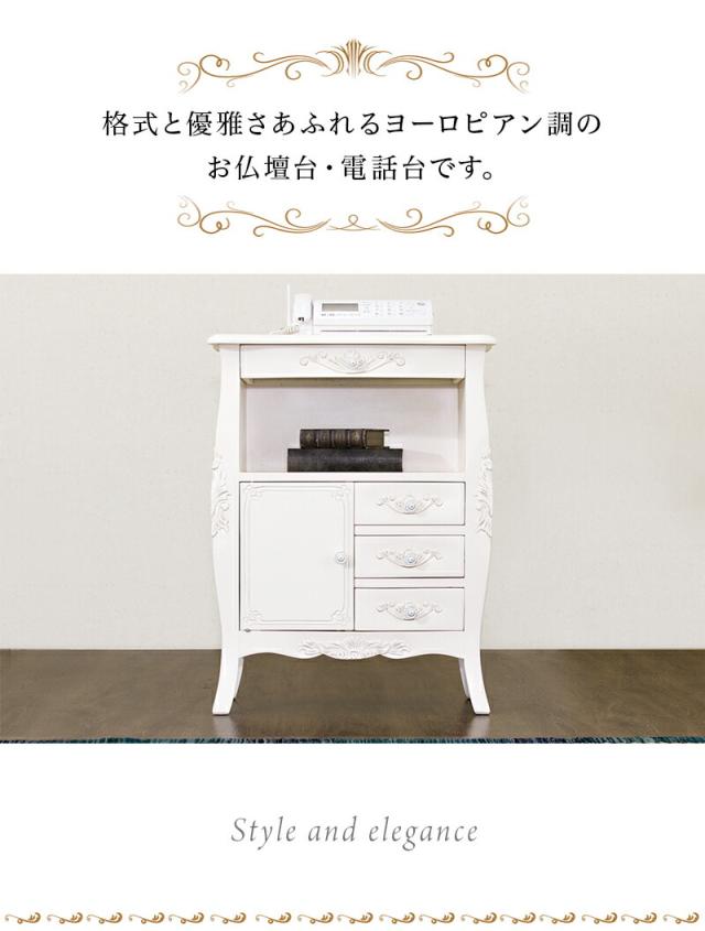 仏壇台 幅60cm ヨーロピアン アンティーク風 ホワイト 白 おしゃれ 猫脚 ネコ脚 姫家具プリンセス 電話台 仏壇 台 ヨーロピアン電話台 キャビネット コンソール 骨董品風 FAX台 /木製/通販/送料無料 新生活 組立不要 厨子 終活