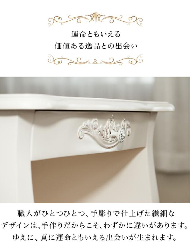 エレガントなヨーロピアン調アンティーク風電話台です ホワイトのロココ調電話台 ロイヤルプリンセス/ゴージャス/エレガンス/クラシカル/アールデコ/姫家具/ヨーロピアン風の家具をお探しの方に 可愛い電話台チェスト猫足の電話台ねこ脚ねこ足電話台ファックス台FAX台 雑貨ショップやサロンにあるような 白家具 アイボリーホワイト 部屋の主役になる可愛い猫脚の収納チェストです。花台やサイドチェストにもお勧めのヨーロピアン風電話台 滑らかな曲線を描くクラシカルな雰囲気