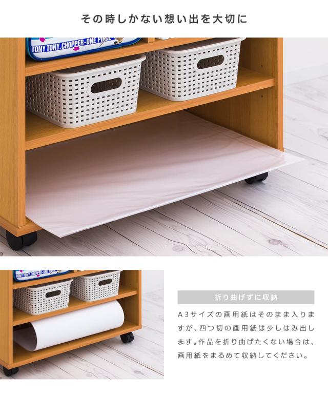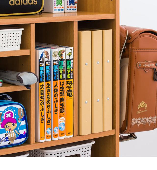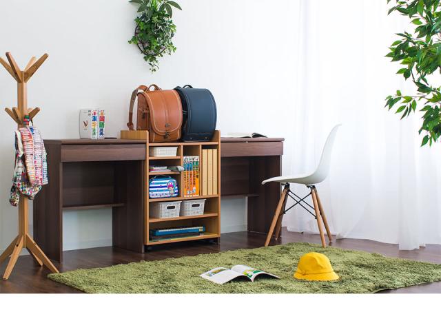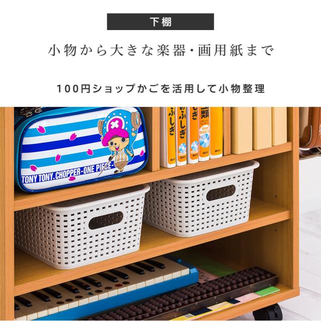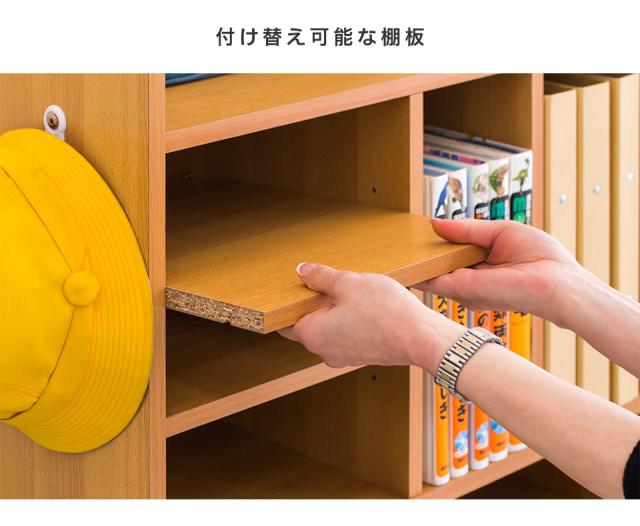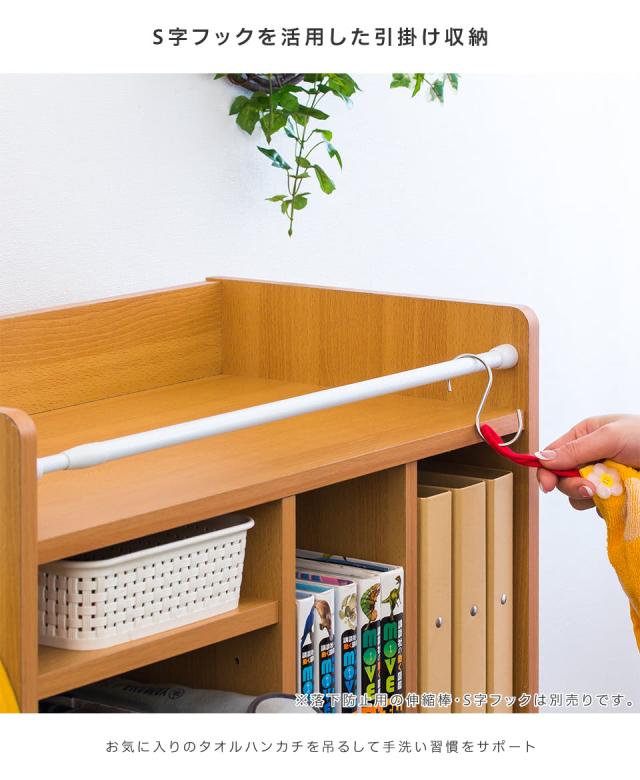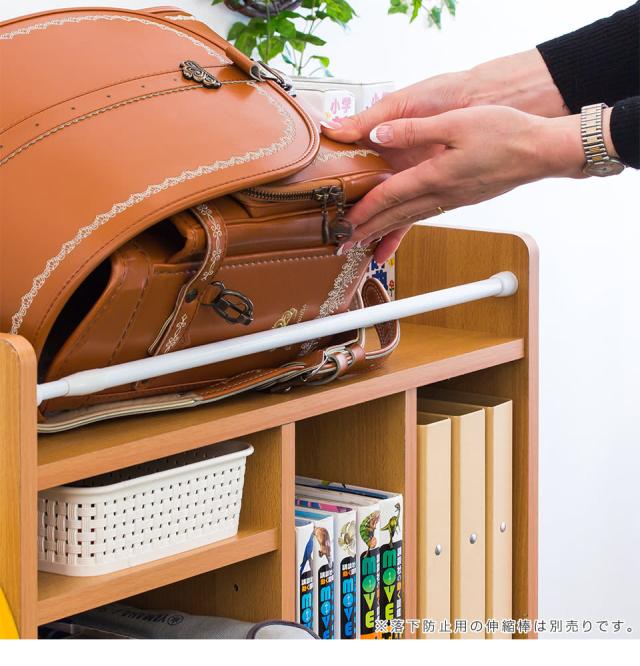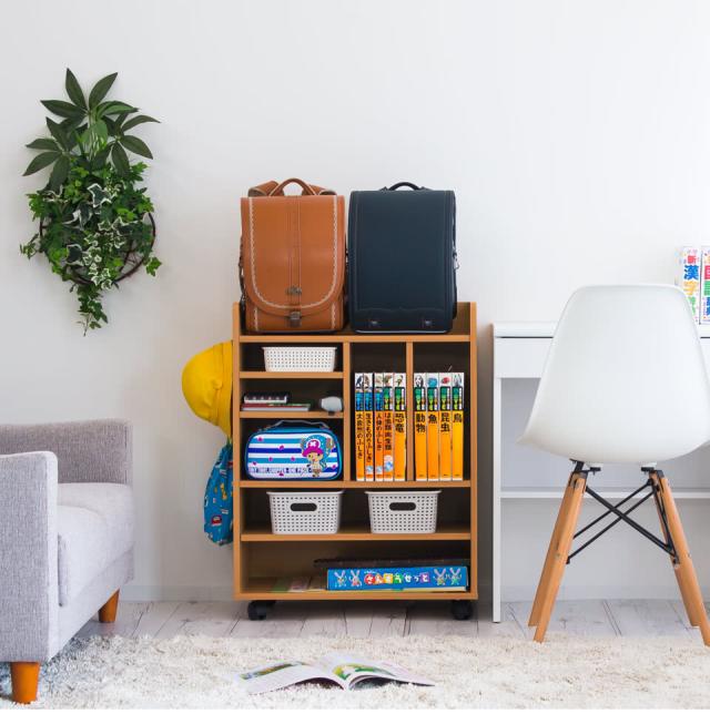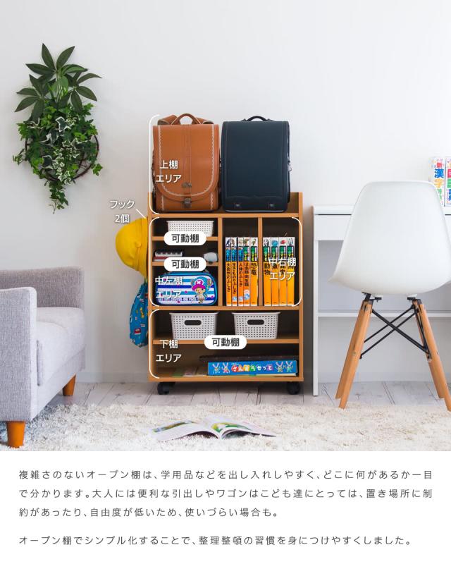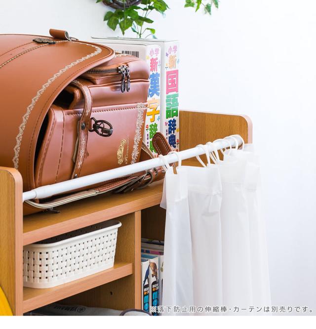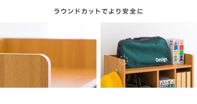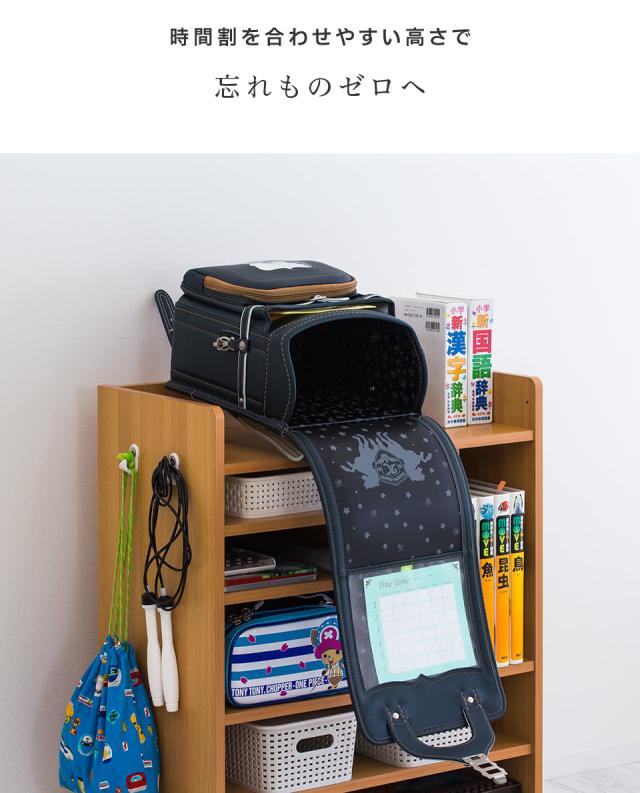 | オンライン学習や在宅ワークに 学びや運動の楽しさをひきだす ランドセル2個対応 オープン棚仕様 キャスター付き 学校や習い事で忙しいイマドキの子供たちの持ち物はテキストやお稽古グッズで多種多様 学びの内容に合わせて自由に付け替えられるようオープン棚を採用 きょうだいで仲良く 2個置きできてコンパクト ランドセルや学用品のサイズにぴったり合うよう緻密にサイズ設計 ランドセルを2個置きできるスペースを確保しつつこども達が使いやすいシンプルなことを一番に開発 デスクサイドとも好相性 両脇にデスクを設置しても見た目スッキリ・子供の背丈でも使いやすくなりました 一般的なデスク天板の高さと調和するランドセルラックの天板高に設計 子供も大人もうれしいランドセルラック 時間割を合わせやすい高さ こども目線でシンプル化 見やすさが整理整頓への近道 複雑さのないオープン棚は学用品などを出し入れしやすく、どこに何があるか一目で分かります。大人には便利な引出しやワゴンはこども達にとっては置き場所に制約があったり自由度が低いため使いづらい場合も オープン棚でシンプル化することで整理整頓の習慣を身につけやすくしました 中右棚 教科書・資料の整理整頓 A4ファイルや図鑑の収納 下棚 小物から大きな楽器・画用紙まで 100円ショップかごを活用して小物整理 自分らしくカスタマイズ タオルハンカチやティッシュ、ソックスなど日々の日用品は人気の100円ショップのバスケットを使えばカンタンに整理できます こども達自身でお気に入りを選んでオリジナルのランドセルラックを作るのはいかが ピアニカやそろばんなど長いアイテムも収納可能 折り曲げずに収納 A3サイズの画用紙はそのまま入りますが、四つ切の画用紙は少しはみ出します。作品を折り曲げたくない場合は、画用紙をまるめて収納してください。 付け替え可能な棚板 大きめのスポーツバッグも収納 中左棚 筆記具・プリント・小物をまとめて A4サイズのクリアファイルや小物の整頓に 付け替え可能な棚板 書道セットなどの大き目の学習ツールにも対応 上棚 アイデアグッズ「つっぱり大輔」を使って ズレ落ちが気になる時に キャスターで移動させても、ガードがあれば安心 つっぱり大輔用 ダボ穴 安心・安全の落下防止グッズ つっぱり大輔が取り付けられるよう予めダボ穴を設けております ※つっぱり大輔をご利用しなくても特に差し支えございません S字フックを活用した引掛け収納 お気に入りのタオルハンカチを吊るして手洗い習慣をサポート すっきり目隠し & プライバシー保護 急な来客でもカフェカーテンがあればお子様のプライバシーが守れます ※落下防止用の伸縮棒・S字フック・カーテンは別売りです。 ラウンドカットでより安全に フック 手さげカバンや帽子を掛けて 2個付きフックは片側・両側どちらにも 本体の両サイドに2箇所ずつフックを取り付ける穴が開いています お部屋の置く場所によって片側に2個でも両側に1個ずつでもフックを使えます 綺麗をキープできるキャスター付き 大人も喜ぶ スイスイお掃除 キャスター付きなので、移動させやすくお掃除も簡単 前2個にはストッパー付きのため思わぬ移動を防いで安心 おしゃれ感もあきらめない 大人も納得のインテリア性 落ち着いた色調と木目なので、リビングやダイニングにもマッチ 成長してもそのまま収納ラックとして長くご愛用していただけます 背面化粧仕上げ どこから見ても美しいのでお部屋のレイアウトを選びません ナチュラル ホワイトウッド |