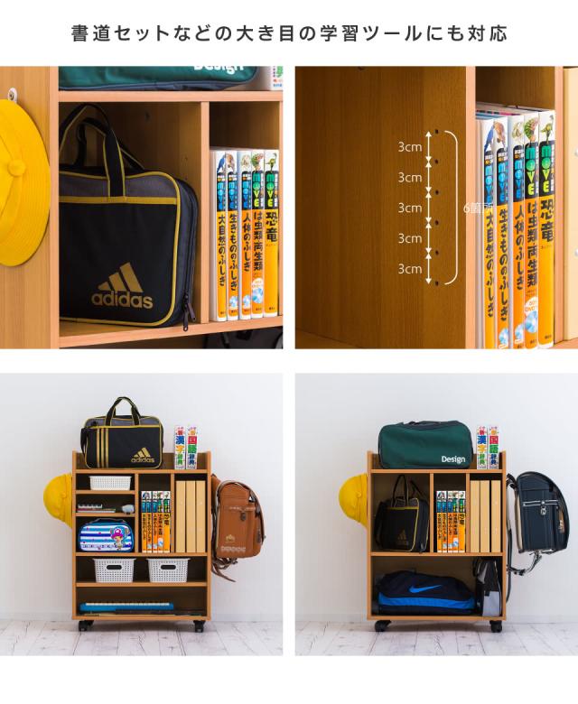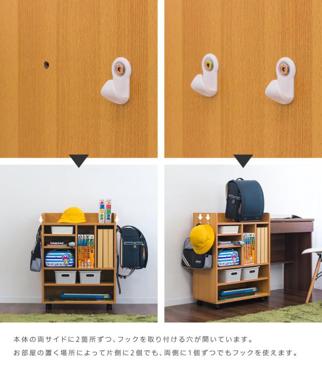 ランドセルラック 2人用 スリム おしゃれ キャスター付き 白 オーク かわいい カウンター下 キャスター 低い ホワイト 北欧 ロータイプ ワイド ランドセル ラック 収納 a4 壁掛け 収納ボックス 棚 フック 子供 2人