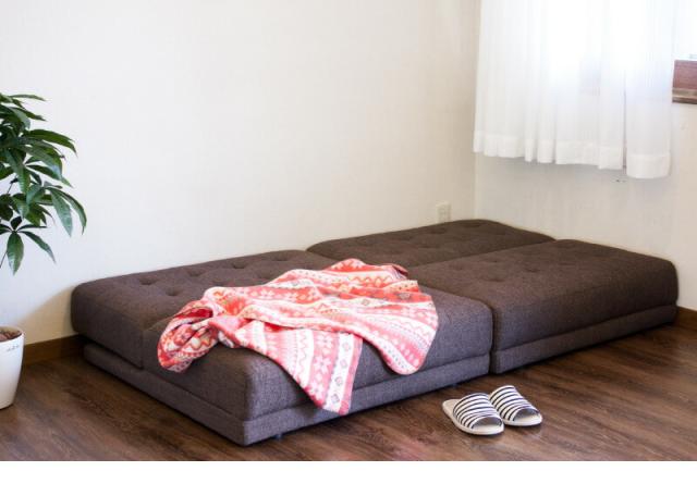 離してソファー、くっつけてベッドになる変形ソファーベッド。