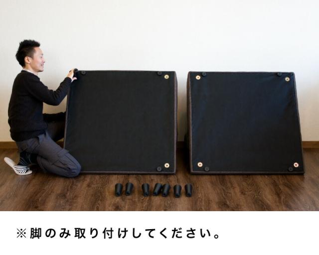 さらに脚が付け外しできるので、ローソファーや、マットレスのようなローベッドにもなり、使い方は自由自在。