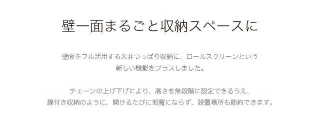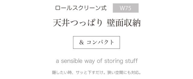 壁面収納 幅75cm ロールスクリーン式 白 ホワイト 茶 ブラウン