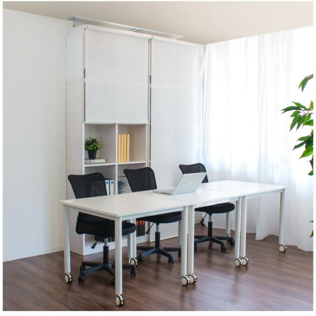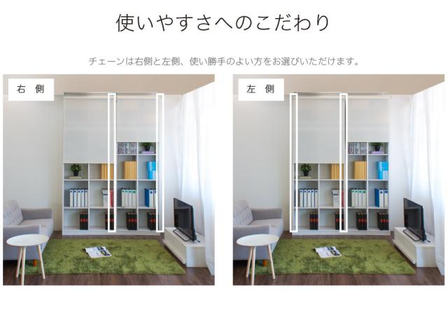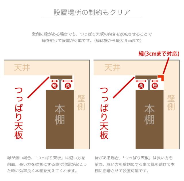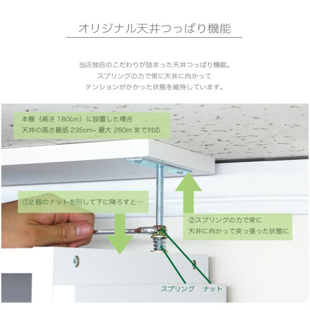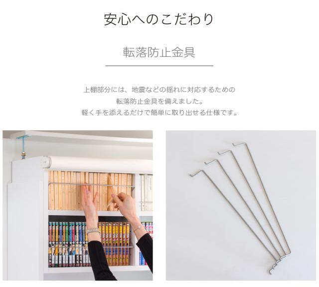 | 当店で大好評「つっぱり耐震書棚」の「つっぱり構造」を採用した「専用上置きユニット」+「シェルフ本体」にサッと隠せる「ロールスクリーン」をセットしました。 チェーンの上げ下げにより、高さを無段階に設定できるうえ、扉付き収納のように、開けるたびに邪魔にならず、設置場所も節約できます。他の家具が接するように配置しても開け閉めカンタン。スペースの都合上、壁面収納が設置できなかった空間でも大量収納が可能になりました。 開き扉や、引き戸では叶わなかった賢い壁面の使い方です。 チェーンの位置は左右どちらかをお選びいただけます。 上置き本体は、独自の伸縮構造により、本体と組み合わせることで、床から天井までの高さ最低235cm〜最高260cmと幅広く対応。地震による本棚の転倒防止に役立ちます。上置き上下2段の収納部分は、コミックがしっかり収まる高さとなっており、収納効率もアップします。 ・上置ユニット 各空間内寸/ 約W32.2xD28xH40.5cm。可動棚は計2枚棚板は各空間で、3.2cmピッチ8ヶ所移動できます。 ・シェルフ本体 各空間内寸/ 約W34xD28xH83.5cm。可動棚は計8枚、側板の厚み2.3cm。棚板は各空間で、3.2cmピッチ19ヶ所移動できます。 起震車による耐震テストで震度7をクリアしました。 大容量の耐震本棚。 適切に設置すれば大地震でも倒れない耐震性能を発揮する安心安全の耐震シェルフにサッと隠せるロールスクリーンですっきり壁面収納。 |