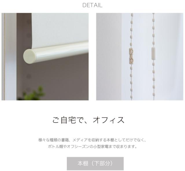 | 本棚・上置棚:素材/プリント化粧繊維板棚板耐荷重/可動棚5kgまで/固定棚10kgまで・連結金具付き ロールスクリーン:素材/アルミ型押し素材・ポリエステル |