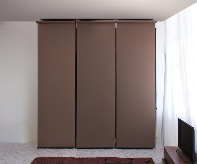 天井 つっぱり 壁面収納 幅75cm ロールスクリーン式 本棚 ラック 白 ホワイト 茶 ブラウン