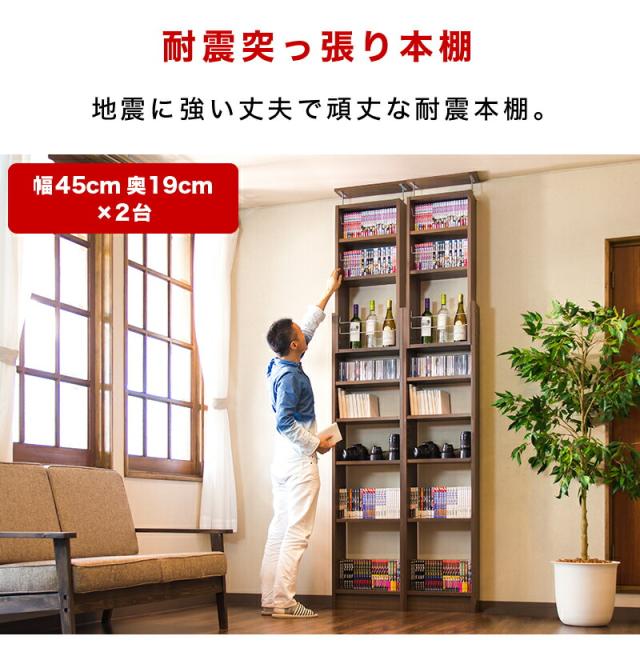 【本物】【2台セット】本棚 耐震突っ張り本棚 幅90 奥行19 ホワイト ブラウン 木製 耐震 薄型 90 スリム 大容量 壁面収納 壁面 オシャレ おしゃれ 天井 突っ張り つっぱり オープン 転倒防止 地震対策 コミック ディスプレイラック ウォールナット 白 茶色 木目 耐震本棚
